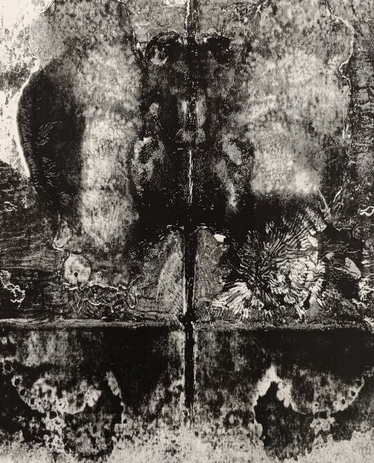 The work engages with the dual nature of environments and realities. Textures and forms mirror themselves, both in image and in sound. In certain points, fractures emerge that form a grid within the structure, as well as forms that allude to types of writing, suggesting a state between readability and abstract experience. The composition was organized as a soundscape, which attempts to respond to the initiatory mystagogical character of the visual work.
