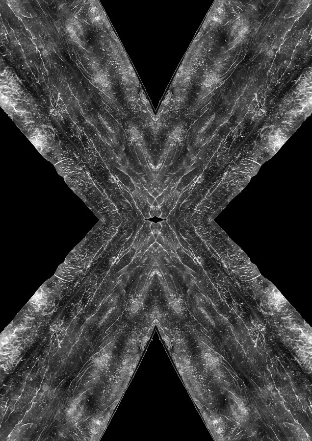 Το οπτικό μέρος προέρχεται από μακροφωτογραφική λήψη ενός φυσικού θραύσματος. Μέσα από την μακροφωτογραφική προσέγγιση και τον συμμετρικό μετασχηματισμό, το αντικείμενο απομακρύνεται από την φυσική του μορφή και αποκτά μια νέα συνθήκη, ενώ αναδεικνύονται λεπτομέρειες που φέρουν τα ίχνη πίεσης, διάβρωσης και διάρκειας.